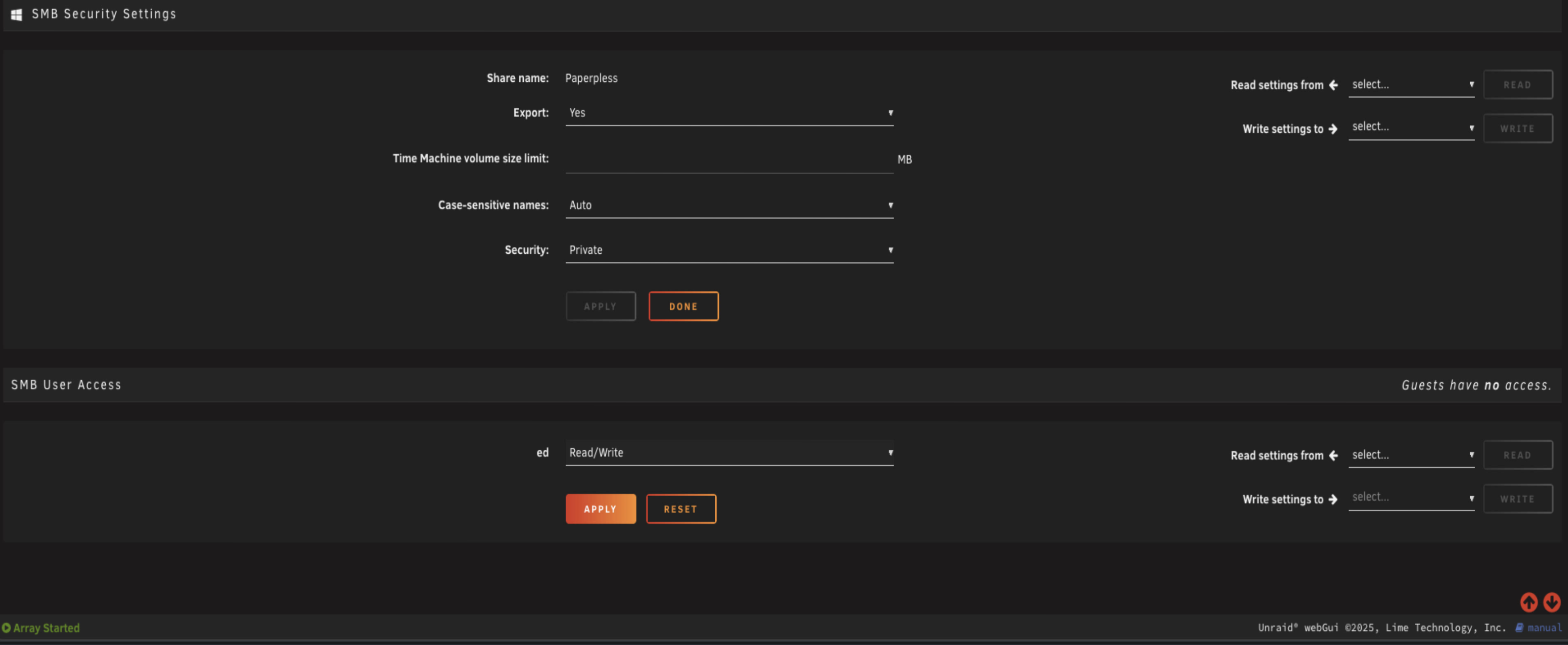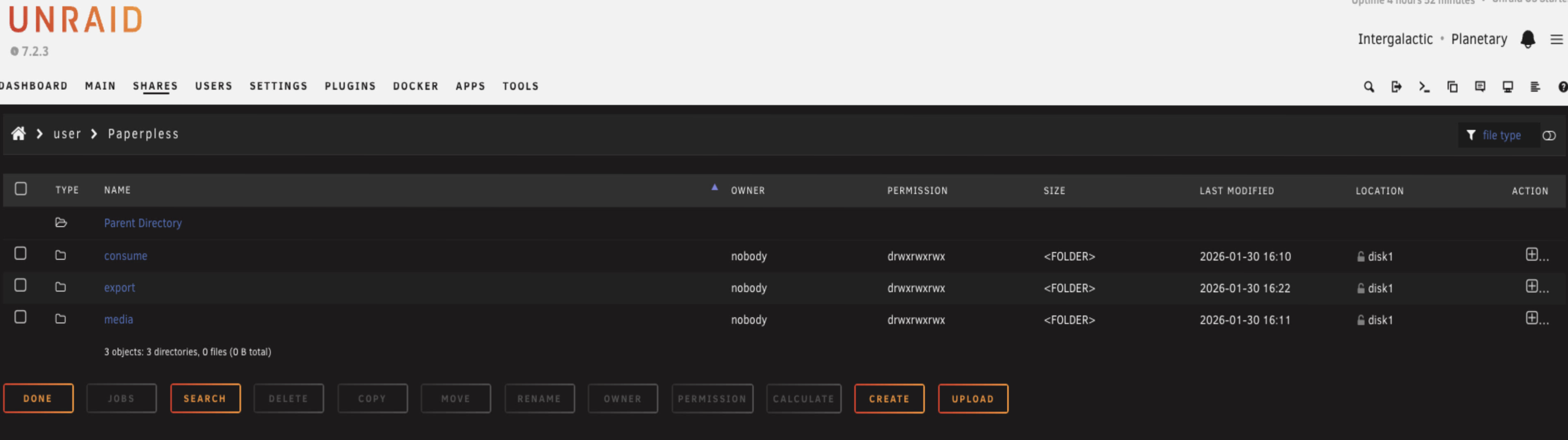 When we get to the Paperless installation later, you'll point the consumption path to this share instead of the consume folder inside the paperless share.