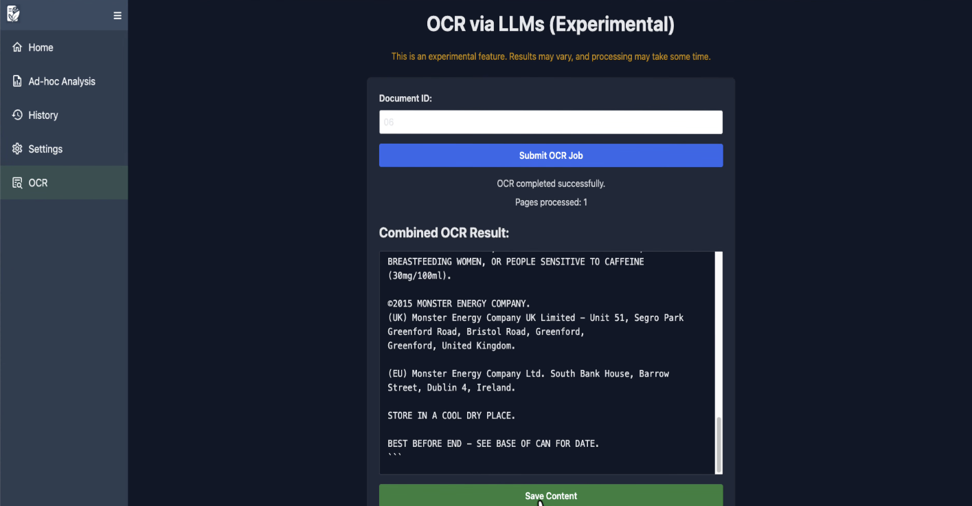 Let's give it a go. Upload something that regular OCR would have trouble with. I'm using a photo of an energy drink can as a test.
