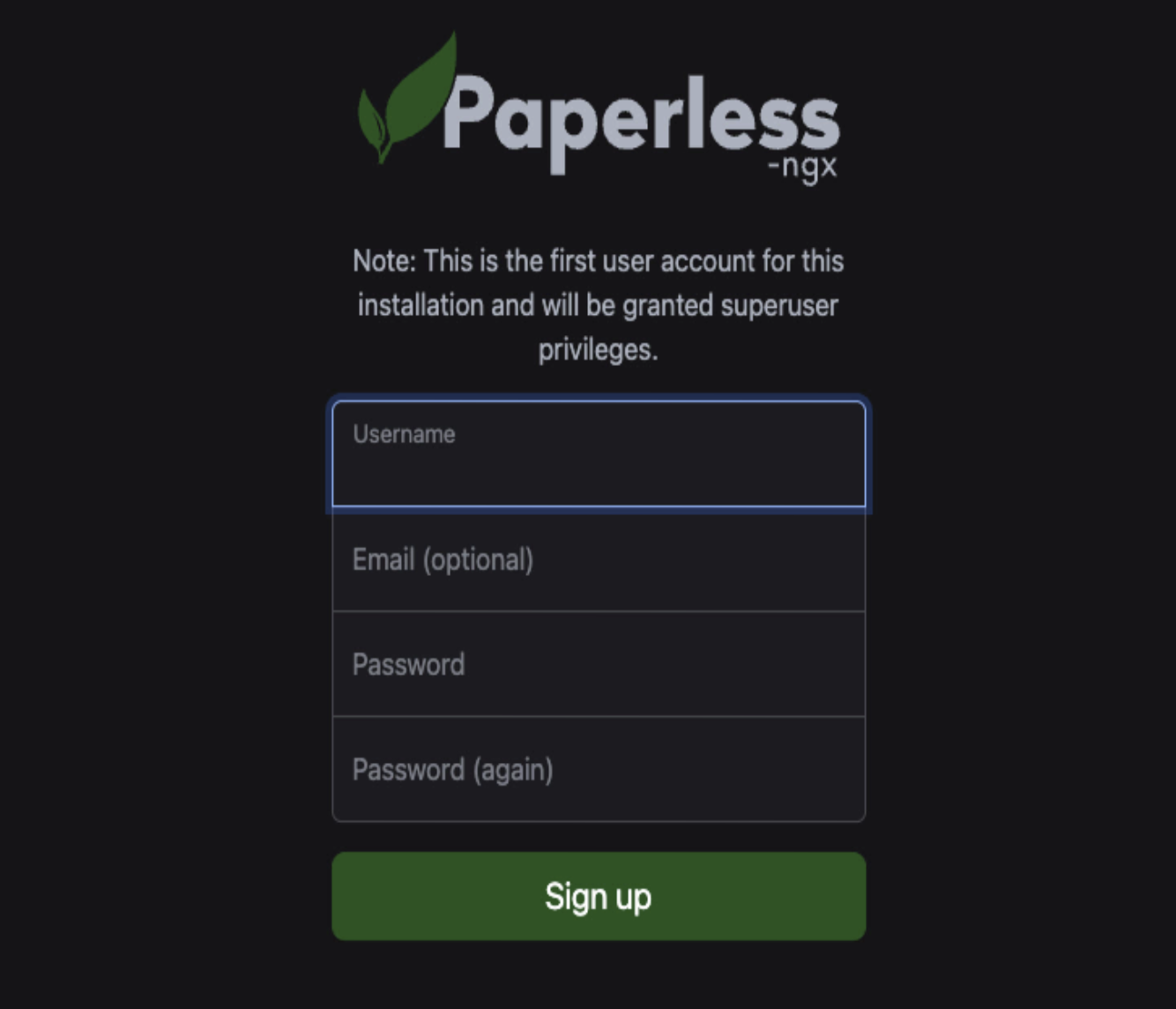 If you're planning to expose Paperless to the internet through a reverse proxy so you can access it from anywhere, make sure you use a strong password here. This is the account protecting all your documents, so don't use something weak.