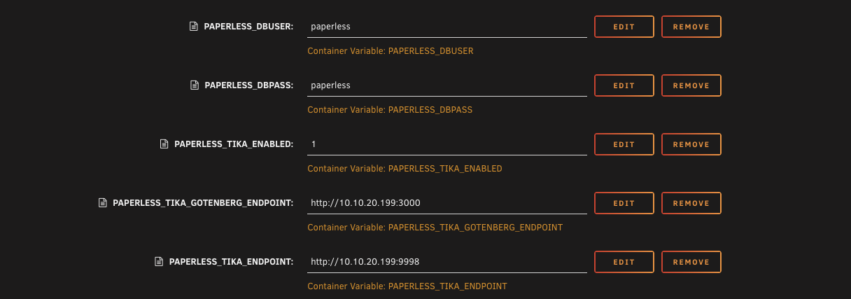 VariablePAPERLESS_TIKA_ENDPOINThttp://192.168.1.50:9998Tika endpoint (used later in this guide)